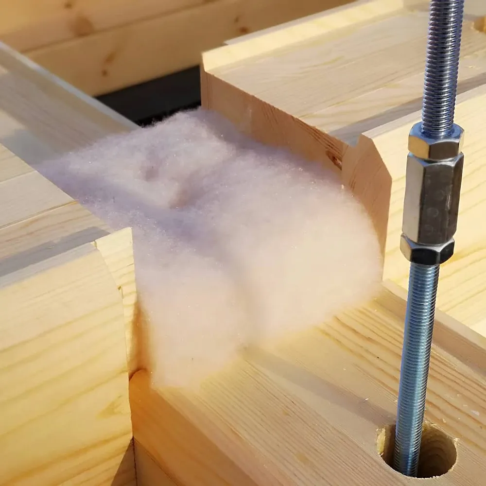 Утеплин абсолютно не впитывает влагу (Vсорб = 0,3%) и не создает благоприятной среды для насекомых и микроорганизмов. Поэтому и сам утеплитель, и материал дома будут теплыми и сухими весь срок использования.